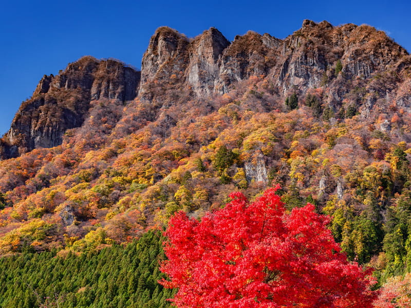 群馬県西部にそびえる妙義山は、日本三大奇景のひとつに数えられる景勝地で、鋭くそびえる岩峰と独特の山容が訪れる人を魅了します。 四季を通じて表情を変える景観は、新緑や紅葉の季節には特に美しく、写真スポットとしても人気です。 登山やハイキングはもちろん、山麓の展望スポットやドライブコースからも壮大な景色を楽しめるのが魅力。 妙義神社や周辺の自然散策とあわせて訪れれば、より深い観光体験ができます。